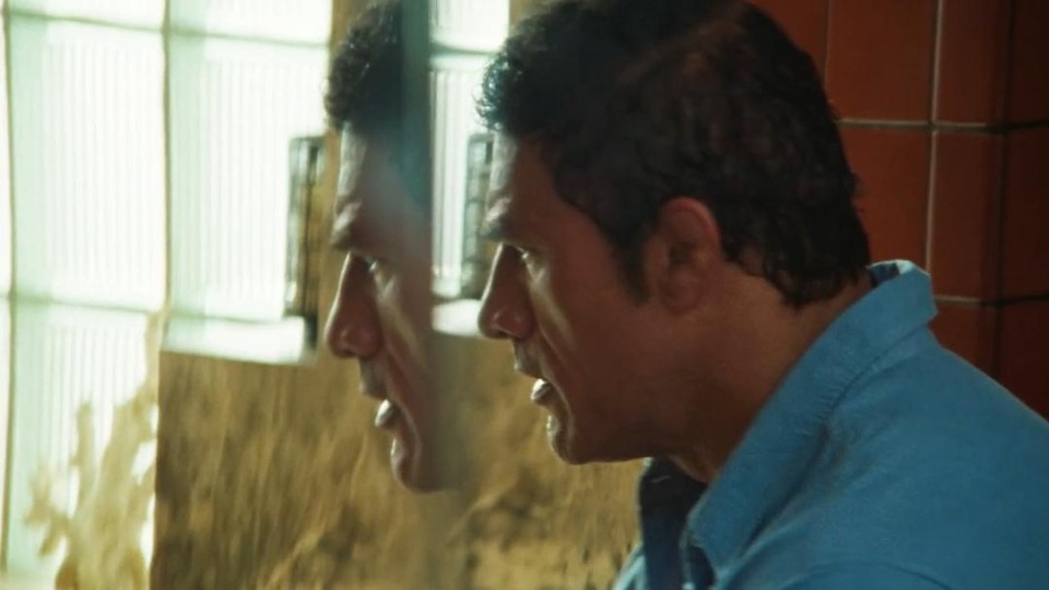 强森在片中呈现出前所未有的表演层次:强健的体魄、克制的礼貌、压抑的情绪(很多他接受采访、和普通人交流的那种平和克制非常有LBJ的感觉),眼神里交织着骄傲与羞耻、自尊与崩塌。片中他第一次尝到失败的痛苦之前的那一场注射止痛药后的凝视表演,几乎是他演艺生涯中最令人动容的时刻,那是一种意志解离的瞬间。到了影片后半段,当他剃光头重新出现在镜头前时,你以为会重新看到“巨石强森”,但奇妙的是,你看到的已经不是他,而是彻底化为马克·科尔的另一个人。